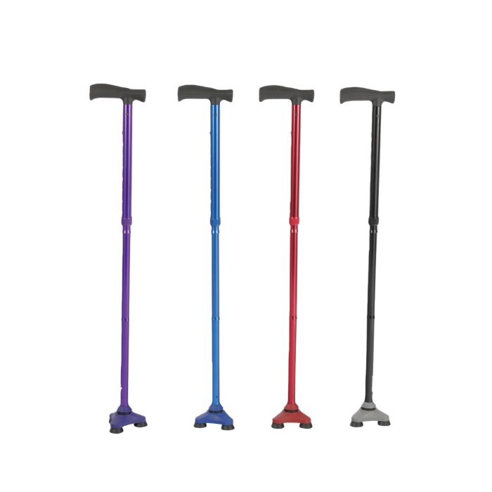 Foldable 3-foot self-standing cane with all-terrain-traction swivel base
