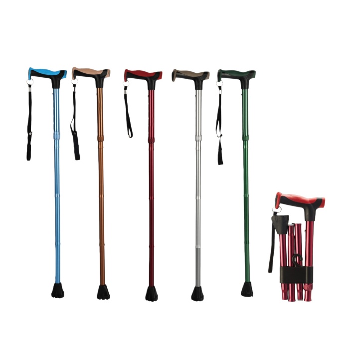 Foldable height-adjustable cane with comfortable rubber handle and non-slip rubber tip