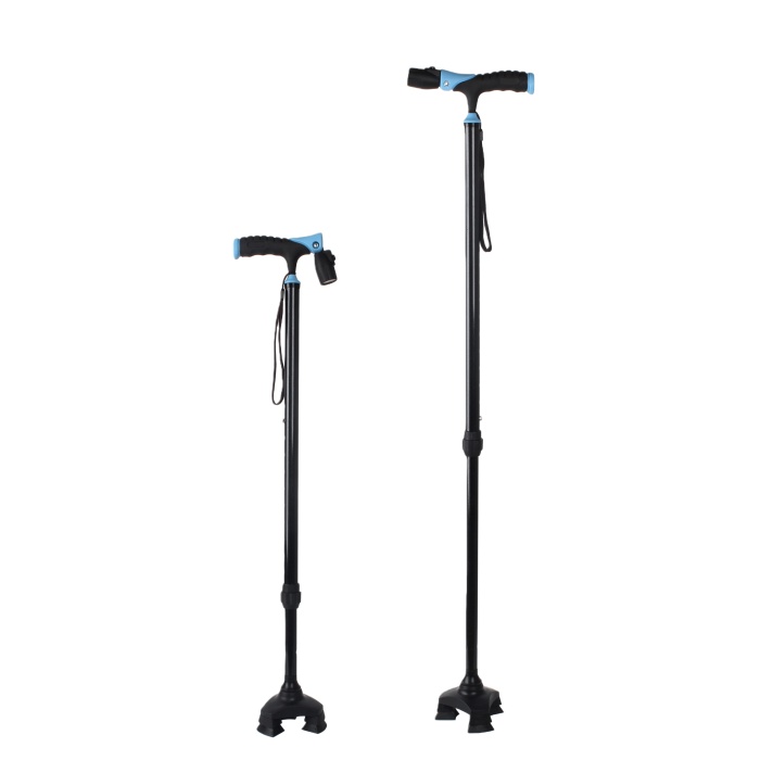 Self-standing 3-foot cane with led light & all-terrain-traction swivel base